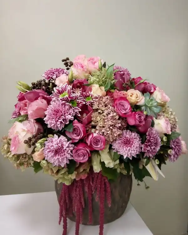 Dekoratif Saksı İçinde Renkli Gül ve Mevsim Çiçekleri